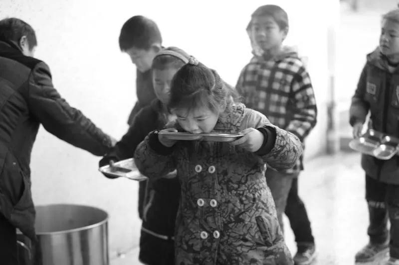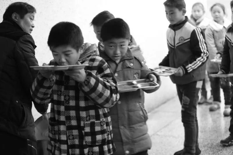 ▲孩子排隊(duì)用餐具等著老師給打水(未安裝凈水設(shè)備的學(xué)校)
