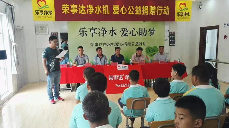 •         6月7日上午,榮事達“樂享凈水”愛心團隊走進河北省河間市,向河間特殊教育學校捐贈了多臺凈水設備。河間市教育體育局、城關教委、河間廣播電視臺等單位領導參加了捐贈儀式。