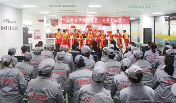 •        2月25日,在春意漸濃的正月時光里,榮事達水工業集團生產車間的員工們喜迎安徽省話劇院文藝小分隊,觀看了由他們帶來的精彩演出。
