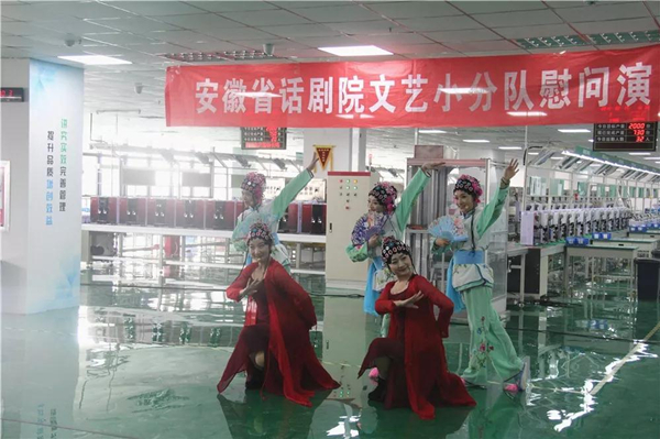 爵士舞《我的新衣》、歌曲《相親相愛》、朗誦《城市的描繪師》、團舞《歡聚一堂》、創意近景魔術、特色黃梅戲等形式多樣的精彩節目將傳統藝術與現代藝術創新融合,揚時尚蓄古韻,給人以耳目一新的全新視聽體驗,贏得了大家的連連掌聲。值得一提的是,生產制造中心總經理孫曉峰參與了黃梅戲的互動表演,孫總嘹亮專業的唱腔,臺下觀眾無不為其喝彩。表演過后,大家仍意猶未盡,津津樂道。技術員小王說道:“這次表演我感受到了政府和安徽省話劇院對我們普通職工群眾的關懷,心里很暖,可以鼓足干勁投入工作了。”