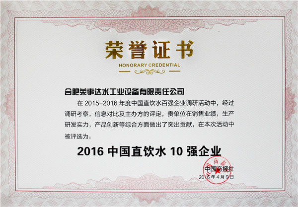 “中國(guó)直飲水百?gòu)?qiáng)企業(yè)”的評(píng)定是對(duì)凈水企業(yè)的銷售業(yè)績(jī)、生產(chǎn)能力、產(chǎn)品創(chuàng)新以及消費(fèi)者品牌認(rèn)知、消費(fèi)者服務(wù)滿意度5方面的高度認(rèn)可,樹立凈水行業(yè)發(fā)展標(biāo)桿、促進(jìn)行業(yè)健康穩(wěn)步發(fā)展,同時(shí),將對(duì)消費(fèi)者選購(gòu)凈水器產(chǎn)生重大參考意義。