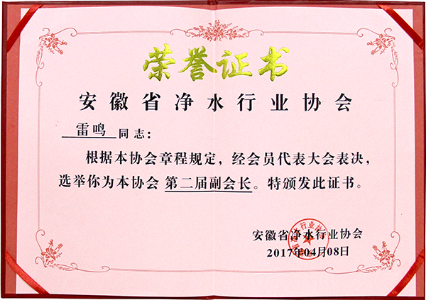 - 熱烈祝賀榮事達水工業公司董事長雷鳴連任安徽省凈水行業協會副會長