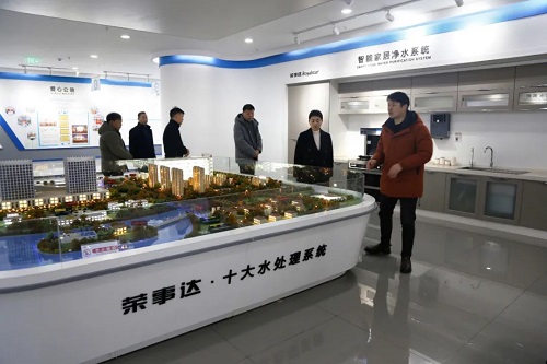 領(lǐng)導(dǎo)一行先后參觀了榮事達智能家用凈水生產(chǎn)車間和智慧水世界展廳。了解榮事達企業(yè)綜合實力及十大水處理系統(tǒng)具體發(fā)展狀況。