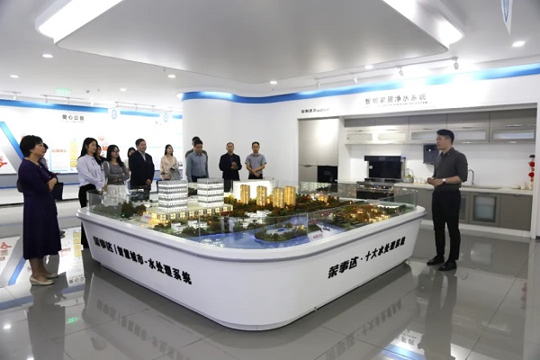 座談結束,在工作人員的引導下,大家參觀了榮事達智慧水世界展廳和智能家用凈水生產車間。了解了榮事達水工業公司的發展歷程、十大水處理系統、愛心公益和黨建工作等情況。參觀過程中,雙方黨支部成員深入交流,共同探討黨建工作與企業發展的深度融合之道。