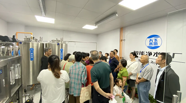 工作人員向居民詳細介紹了智能凈水工廠的工藝流程、技術優勢以及后期的維護管理等。居民在見證了榮事達智能凈水工廠的整體規模實力后,對凈水工廠的水質安全十分安心,表示今后家庭飲水就喝榮事達智能凈水工廠的直飲水。