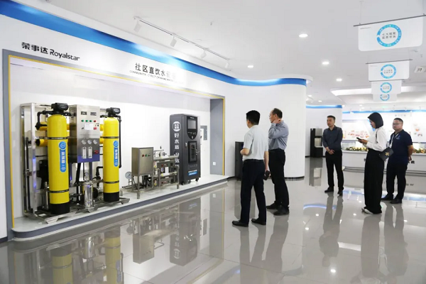 領導一行參觀了榮事達智慧水世界展廳,聽取了集團的發展歷程以及令人矚目的成就,全面了解了社區智慧飲水系統、校園直飲水系統、全屋智慧凈水系統等榮事達十大水處理系統,領導們對公司的綜合實力給予了高度評價與認可。