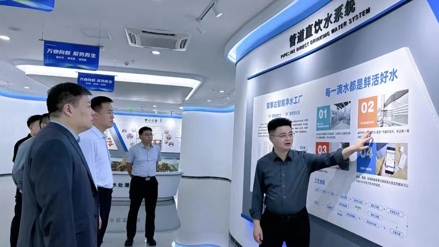 領導一行參觀了解集團全屋智慧凈水、管道直飲水、校園智慧飲水、單位/工廠直飲水等項目,實現凈水行業全領域項目發展。