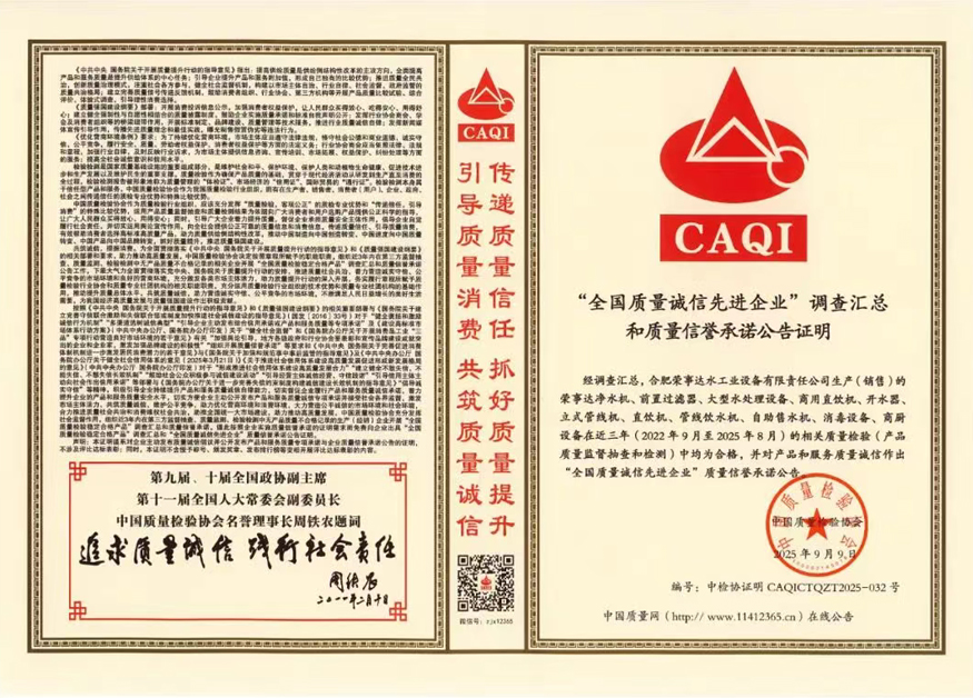 未來,榮事達(dá)水工業(yè)將繼續(xù)秉持“質(zhì)量為先、誠(chéng)信為本”的理念,在凈水技術(shù)創(chuàng)新與產(chǎn)品品質(zhì)升級(jí)上持續(xù)發(fā)力,打造全場(chǎng)景、多領(lǐng)域的飲水解決方案,為推動(dòng)我國(guó)凈水行業(yè)高質(zhì)量發(fā)展與“質(zhì)量強(qiáng)國(guó)”建設(shè)貢獻(xiàn)更多力量。