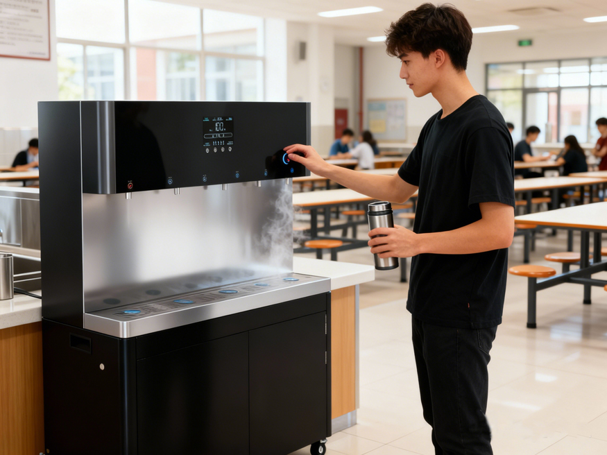 設備搭載五級RO反滲透技術,有效濾除泥沙、重金屬等雜質,確保出水達直飲標準;可定制多龍頭款式,分設開水溫水,可按需供應;8 寸彩屏 + 觸控按鍵,界面清晰易上手。AI系統實時顯水位、提醒濾芯壽命,水不開不出水,加倍安全;依托熱能交換與水電分離專利,實現節能降耗和安全保障;搭配316 不銹鋼內膽、車規級發熱管,大容量設計兼顧安全與大流量需求。