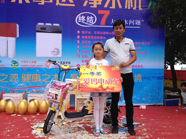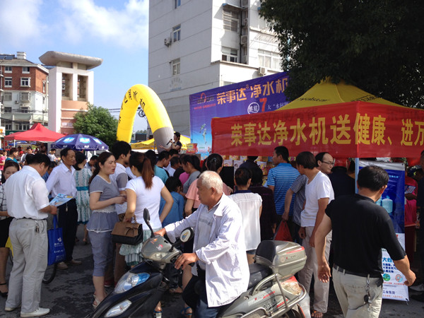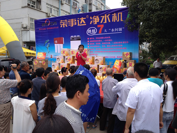 為打開市場、推廣產品,蕪湖管理中心舉辦了多次市場活動。7月5日,榮事達凈水機“送健康  進萬家”感恩回饋活動在蕪湖市三山區順利舉行,現場人氣爆棚。消費者購機不但能享受價格優惠,還能砸金蛋抽大獎。活動當天,現場成交凈水機達34臺,電動車、洗衣機等大獎均被抽出。