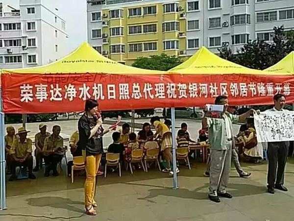 據(jù)悉,為了居民們在炎熱的夏日感受到一絲清涼,榮事達凈水機山東日照代理商和公司工作人員為居民們現(xiàn)場搭建帳篷,并且將凈水機搬到了活動現(xiàn)場,方便大家在參加活動的時候喝到免費安全的健康水。現(xiàn)制現(xiàn)飲的純凈水受到了居民們的一致好評。