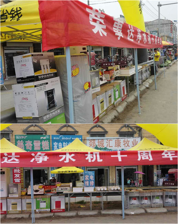 為了讓榮事達品牌形象深入人心,讓凈水機走進更多鄉鎮家庭,榮事達的工作人員在超市、電器商店等網點展開促銷,墻體廣告、大篷車、廣播、帳篷等宣傳方式齊上陣,全方位進行產品推廣。據了解,榮事達凈水機中國風系列之紅梅純水機和新上市的自吸式壁掛加熱RO一體機在鄉鎮市場備受青睞,其內部自吸增壓的設置攻克了三四級市場水壓不足、不穩的問題,除此之外,簡單便捷的使用方法和較高的性價比也是吸引消費者購買的主要原因。