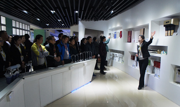11日下午,在開發部王部長等工作人員的陪同下,上百位客戶在生產車間見證了產品生產和檢測的全過程,對配置先進的生產線及檢測線贊不絕口。在成品倉庫,客戶對榮事達每款產品采用單獨包裝箱、箱體里外加厚措施、箱體加印區域碼方便辨識等做法都十分滿意。為了讓客戶更直觀地了解產品質量,一行人員來到產品實驗室觀看了濾瓶和壓力桶爆破實驗。由于產品耐壓能力強,等待爆破的過程十分漫長,實驗結束后,水錘爆破測試機前被圍得水泄不通,在場客戶看到儀表數值后紛紛稱贊榮事達凈水機耐壓能力強,安全性能高。