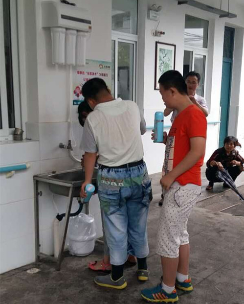 據了解,江都區特殊教育學校共有師生200多人,學生多為聽障、智障兒童,由于學校是寄宿制,大部分孩子吃住都在學校,日常飲水主要依靠宿舍內老式開水器或者從家里帶水,十分不便。
